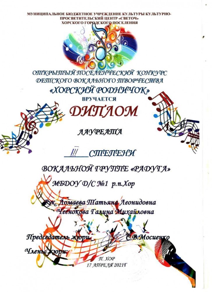 06.04.2019 г в «Культурно-просветительном центре „Светоч» Хорского городского поселения прошел межрайонный конкурс детского вокального творчества «Хорский родничок».